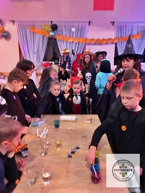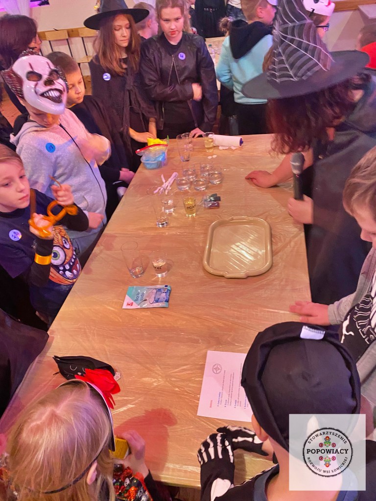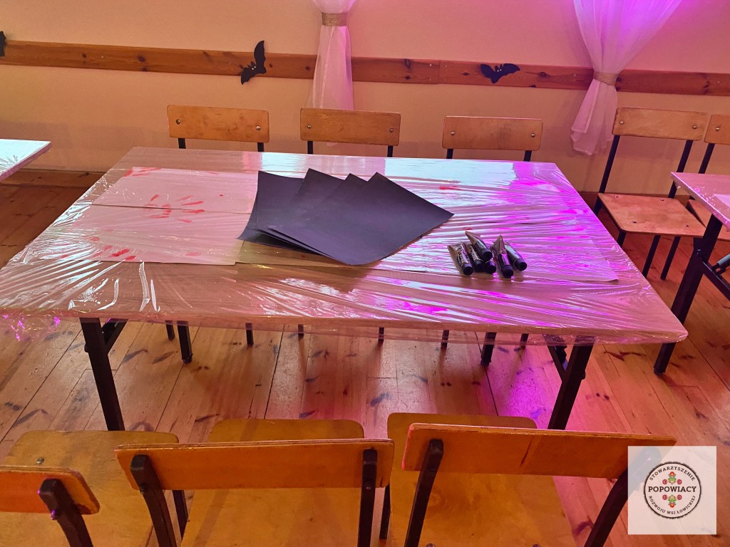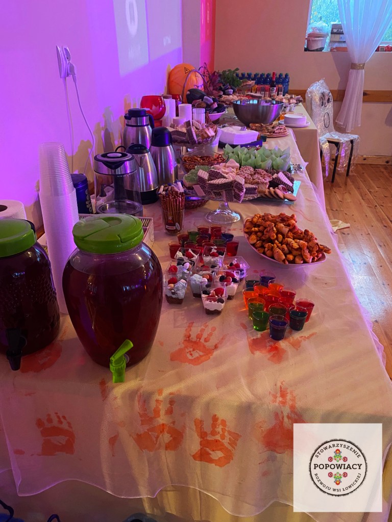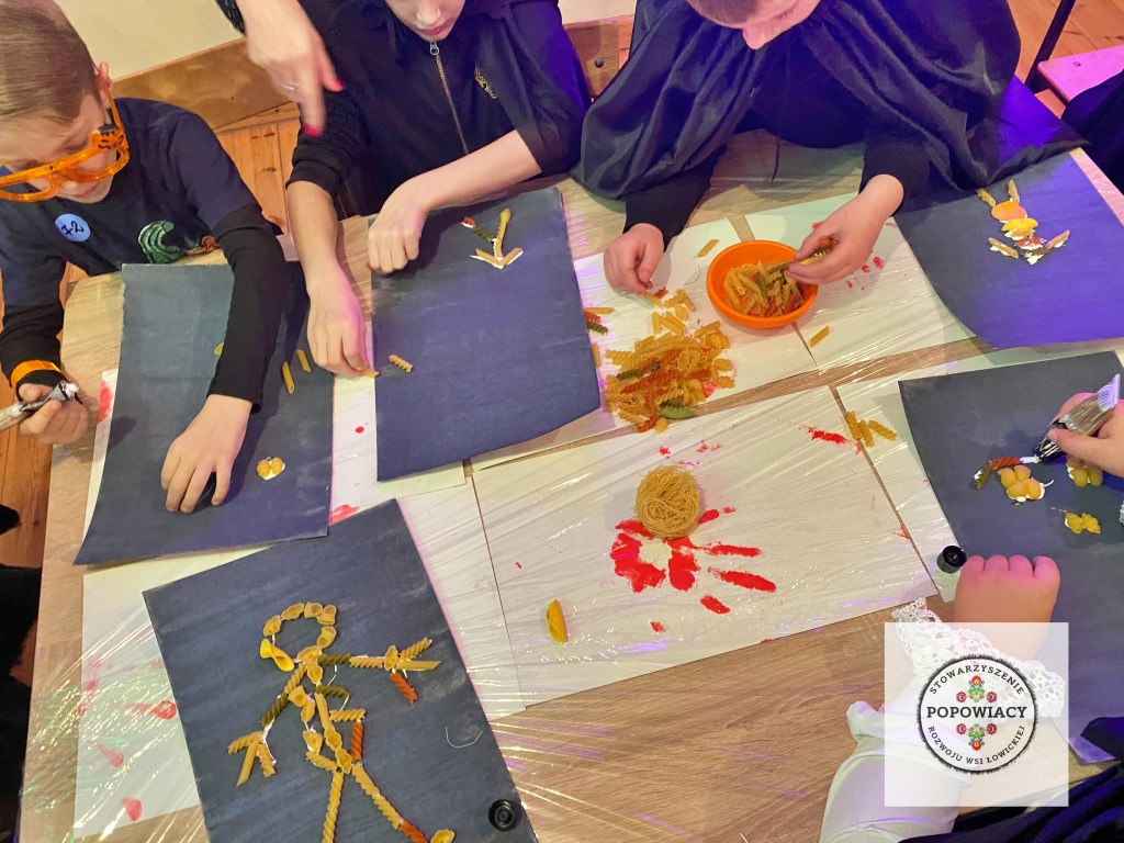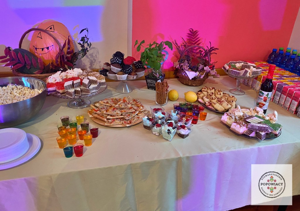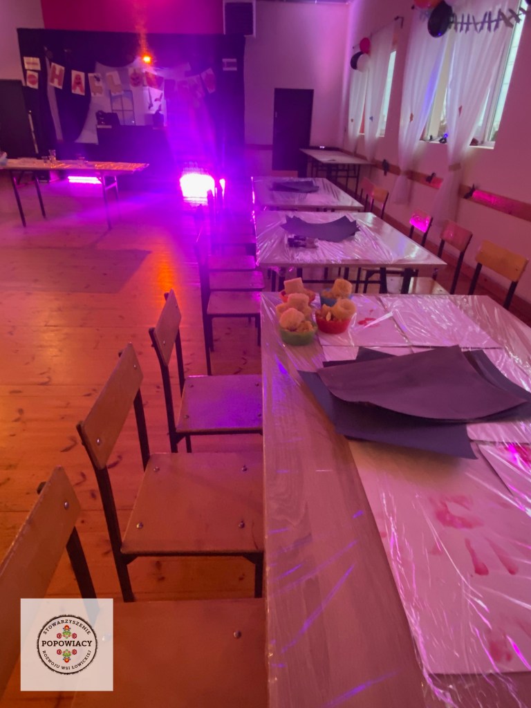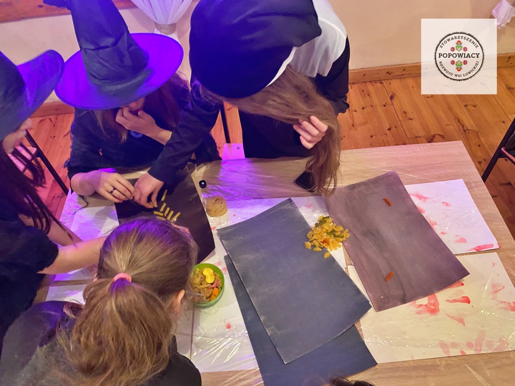 5 listopada 2022 roku w OSP w Popowie odbyła się impreza halloweenowa organizowana przez nasze stowarzyszenie. Podczas imprezy uczestnicy mieli okazję wysłuchać prezentacji na temat pochodzenia święta Halloween, skąd wzięły się zwyczaje przebierania za straszne potwory czy kościotrupy, dlaczego dynia z lampionem w środku jest symbolem Halloween oraz czemu dzieci bawią się w „cukierek albo psikus”. Po tej części prezentacji nasi najmłodsi uczestnicy otrzymali zadanie plastyczne – wylepienie swojego kościotrupa z dostępnych materiałów (kleju i różnych rodzajów makaronu). Powstały piękne prace, które w przyszłym roku będą zdobić ściany sali podczas kolejnej edycji imprezy. Oczywiście za wykonanie prac dzieci i młodzież otrzymały po cukierku, rzecz jasna. 🙂 W tym roku rodzice mogli podziwiać prace halloweenowe swoich pociech wykonane podczas warsztatów z języka angielskiego. Fotorelację z warsztatów można obejrzeć tutaj.