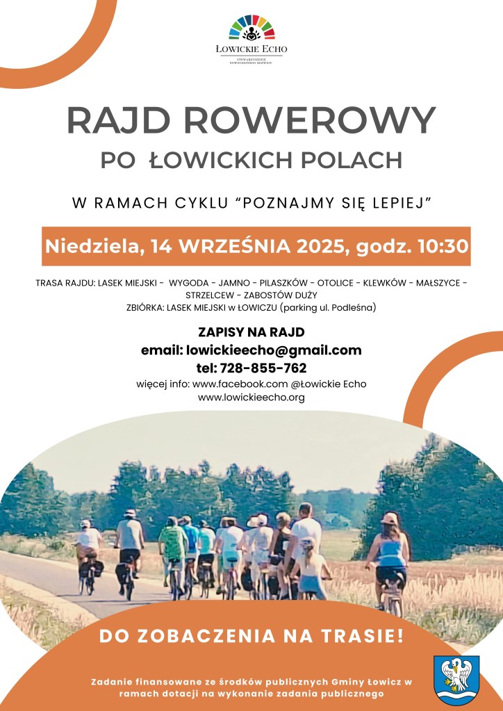 Serdecznie zapraszamy do zapisów na ostatni już rajd rowerowy organizowany w ramach zadania publicznego pn. „Poznajmy się lepiej”. Tym razem zaprosimy Was do przejażdżki urokliwymi terenami wiejskimi. A ponieważ jak już wspominaliśmy, jest to ostatni rajd organizowany przez nas. tym roku, to postanowiliśmy objechać Gminę Łowicz do okoła 🙂