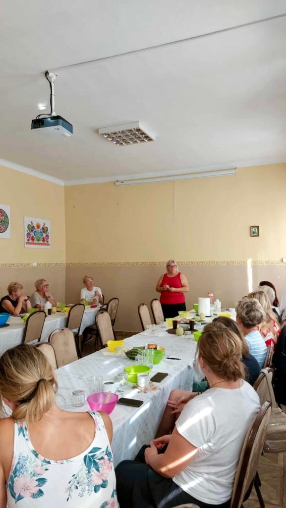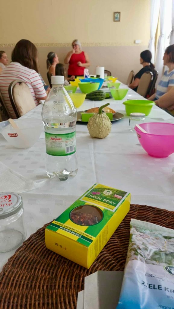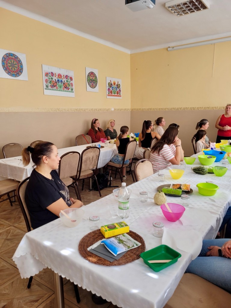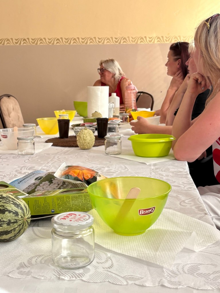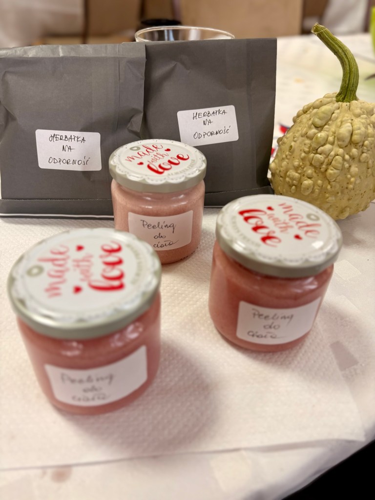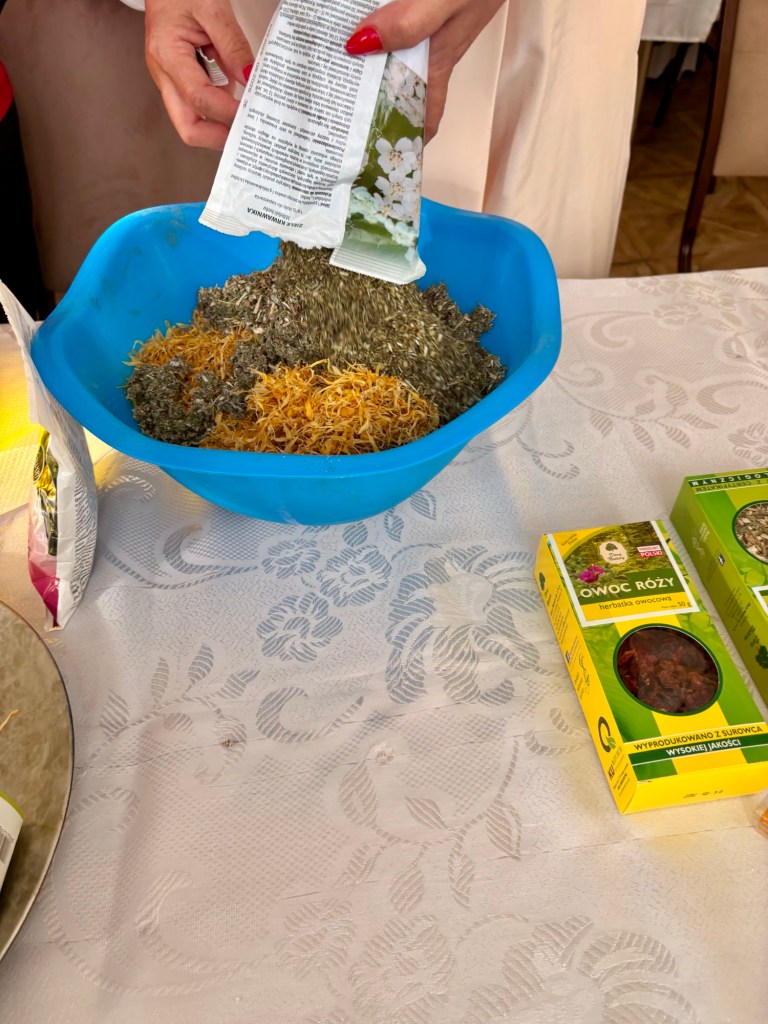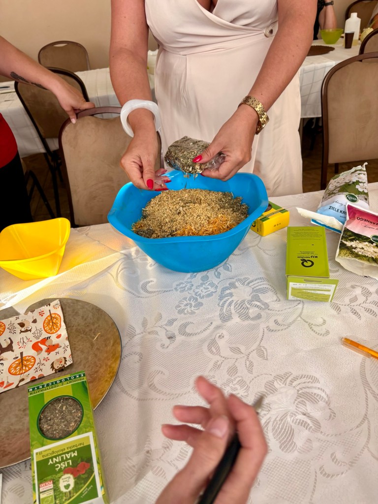 Uczestnicy warsztatów mieli okazję zapoznać się z właściwościami ziół i naturalnych składników, a także własnoręcznie przygotować kosmetyki pielęgnacyjne. Program zajęć łączył wiedzę teoretyczną z praktycznymi wskazówkami. Każdy z uczestników otrzymał solidną porcję porad, które można wykorzystać w codziennej pielęgnacji – od prostych przepisów na naturalne kremy i peelingi po wskazówki, jak unikać chemicznych dodatków w produktach kosmetycznych. Warsztaty przebiegały w twórczej atmosferze, a prowadząca odpowiadała na liczne pytania, dzieląc się swoim doświadczeniem.